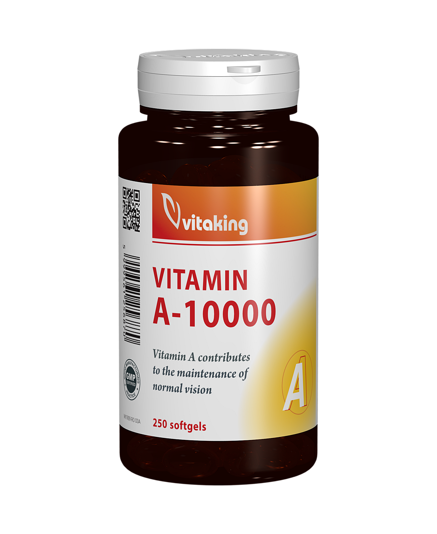 Acest supliment alimentar furnizează 10.000 UI (3.000 μg) de vitamina A per capsulă moale. Vitamina A este esențială pentru sănătatea ochilor, pielii, imunității și pentru funcționarea normală a celulelor. Formula concentrată, cu 250 de capsule, oferă un aport de lungă durată, fiind potrivită pentru întreaga familie.