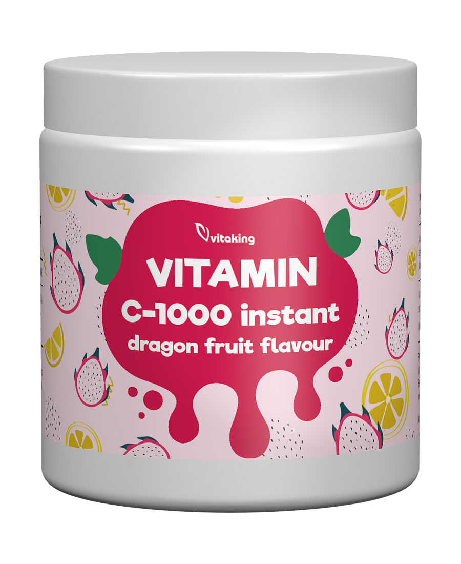 Vitamina C Instant 1000 mg cu bioflavonoide și aromă de fructul dragonului – energie, imunitate și gust exotic