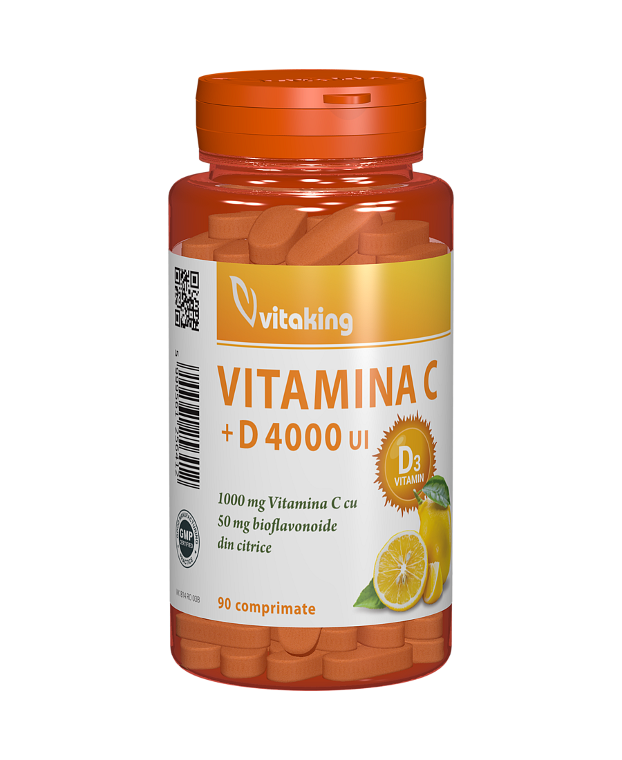 Vitamina C 1000 mg cu Bioflavonoide și Vitamina D3 4000 UI – combinația perfectă pentru imunitate puternică, sănătate osoasă și vitalitate zilnică.