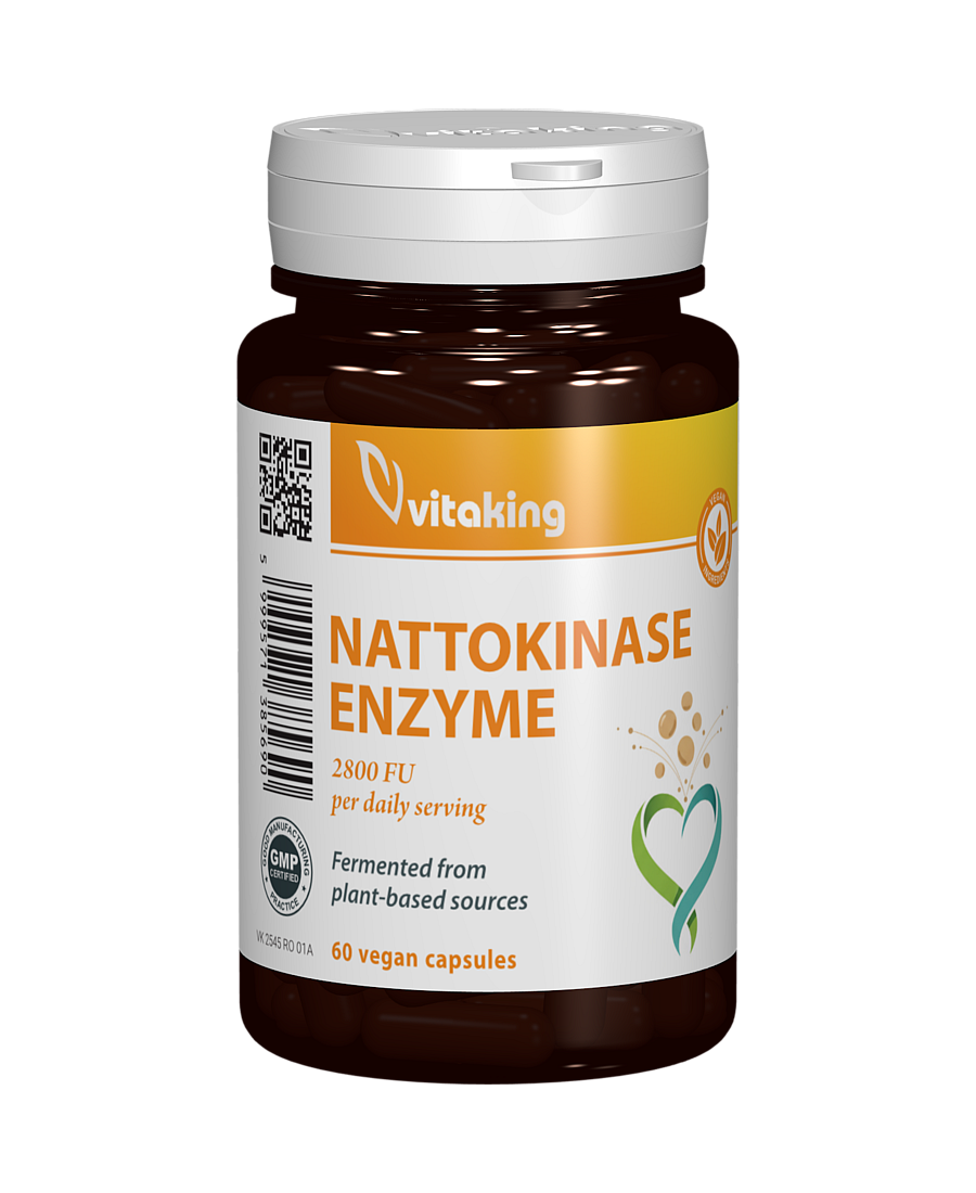 Nattokinaza este o enzimă proteolitică obținută prin fermentarea tradițională a boabelor de soia, recunoscută pentru capacitatea sa de a susține sănătatea sistemului cardiovascular și circulația sanguină. Formula noastră oferă 2800 UF Nattokinază (unități de degradare a fibrinei), contribuind la menținerea fluidității normale a sângelui și la reducerea riscului de formare a cheagurilor.
